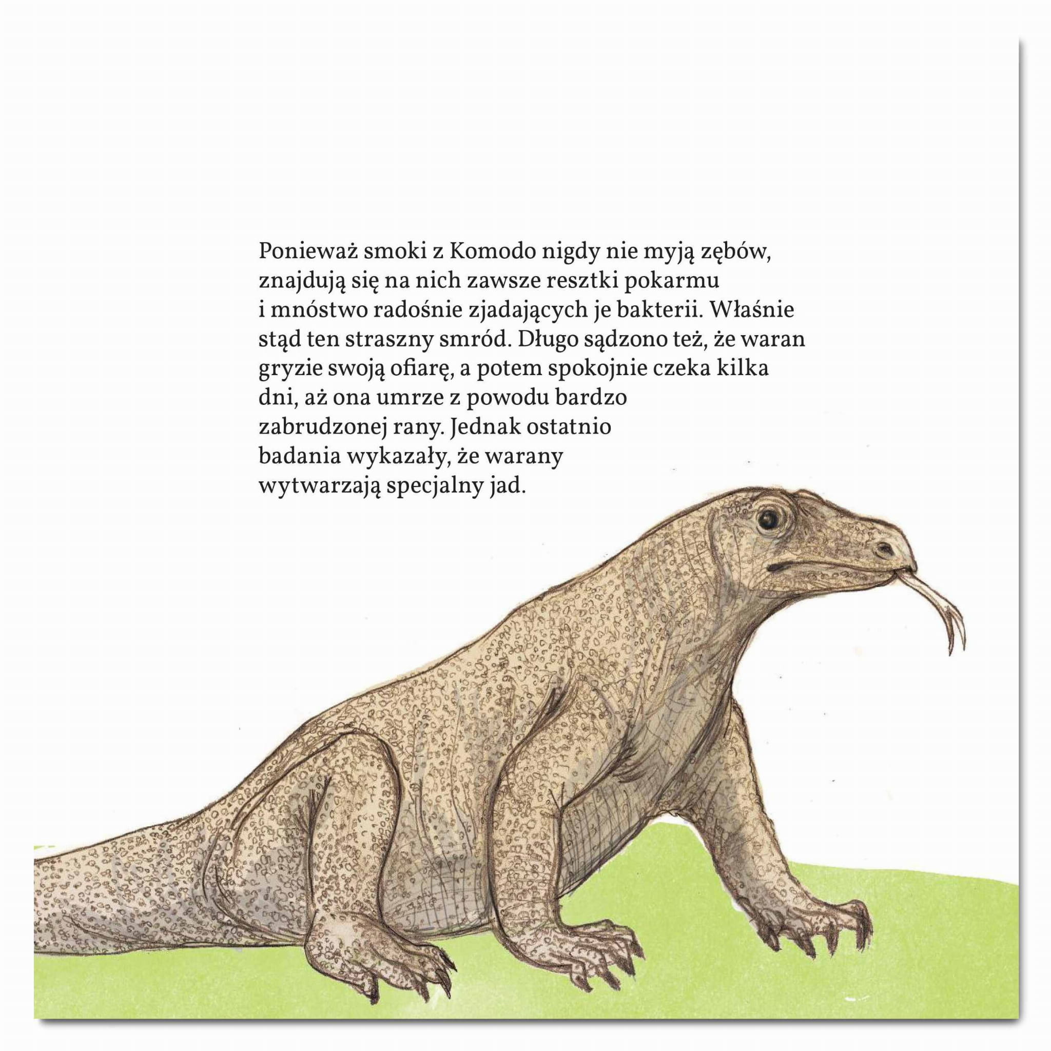 Większość opisanych zwierząt jest mi mało znana. Przeczytacie tu np. o niesporczaku, który ma ryjek wyglądający jak odkurzacz. Dowiecie się również, jak wygląda suhak, kto ma śmierdzącą paszczę smoka, a także jak wygląda zamaskowany zabójca. Każde zwierzątko jest bardzo interesująco i zabawnie przedstawione.