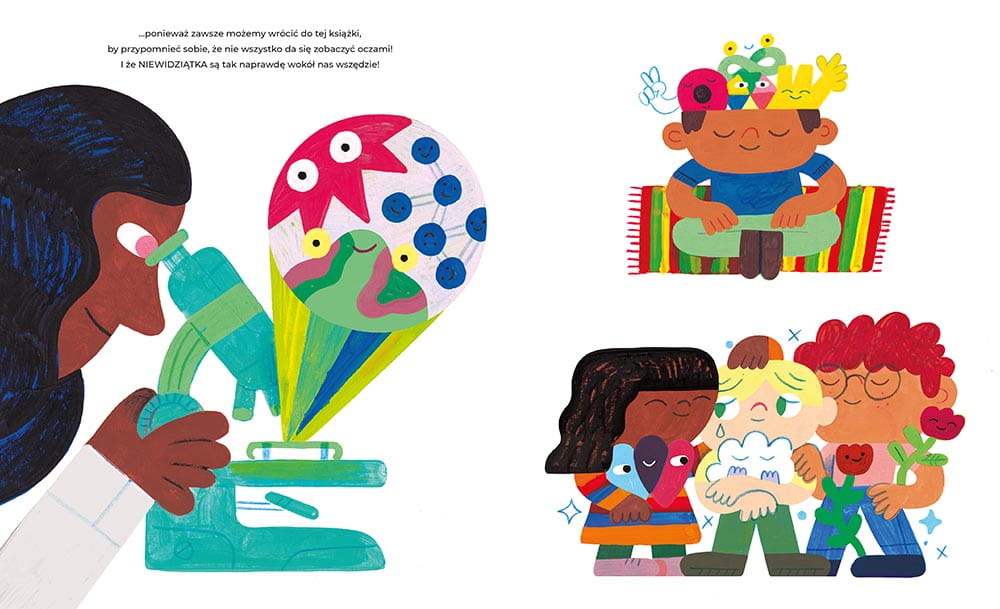 Z tą książką dzieci mogą zrozumieć, że wszystko to co jest w nas i co nas otacza, nawet rzeczy niewidzialne, można przedstawić oraz sobie wyobrazić. Niewidziątka są przedstawione są nietuzinkowo i niebanalnie. Bez zwykłych emotek, a za pomocą uroczych i zabawnych stworków, które jak najlepiej starają się odzwierciedlić to, czym są.